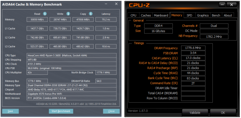 [ #2 : CL-tRCD-tRD-tRAS, Voltage : 17-21-21-44, Latency : 70.2 ns ]
