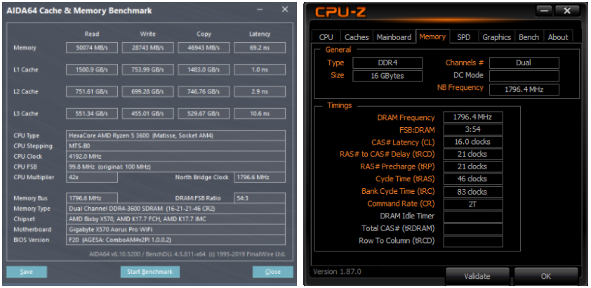 [ #1 : CL-tRCD-tRD-tRAS, Voltage : 16-21-21-46, Latency : 69.2 ns ]